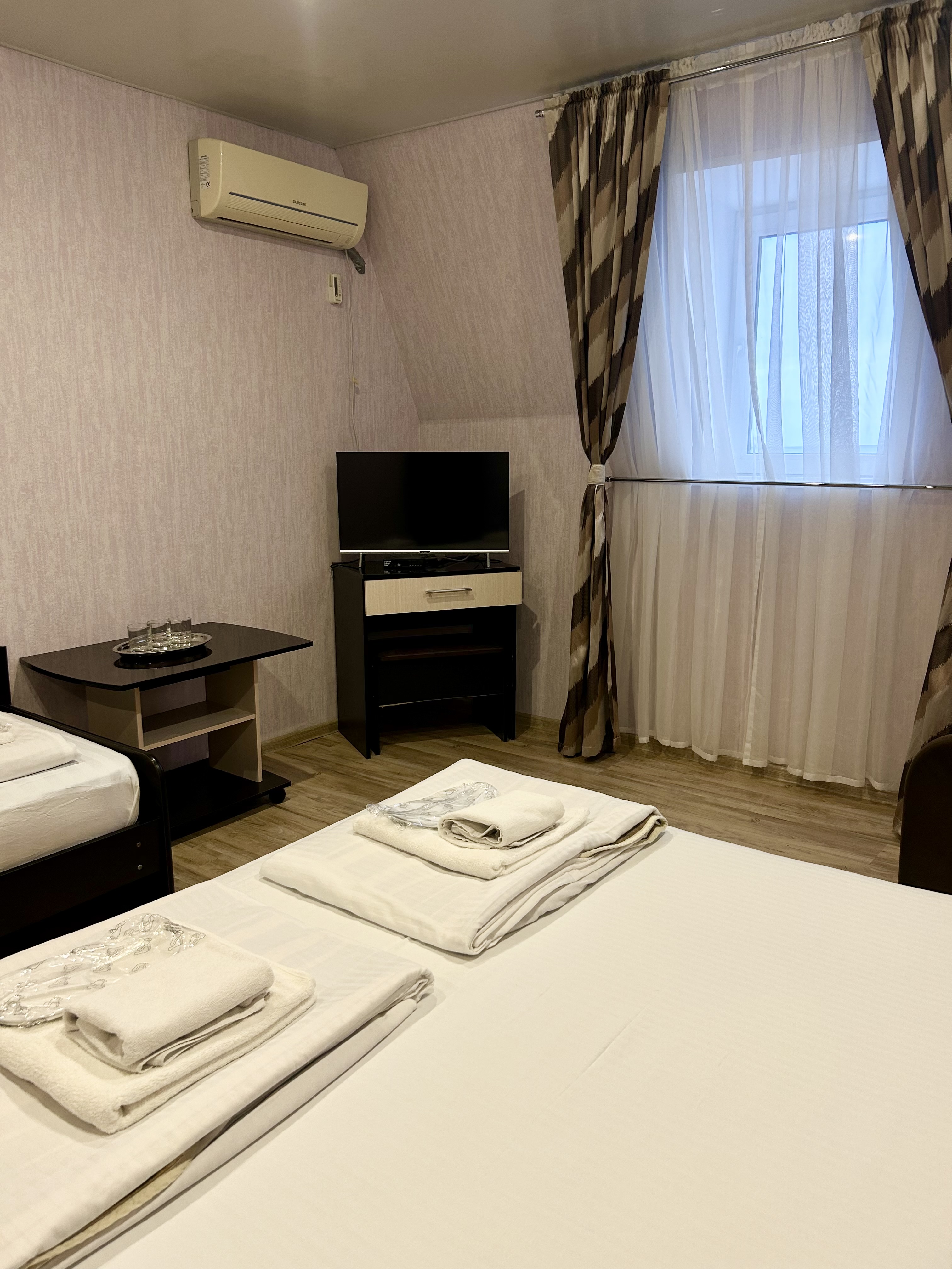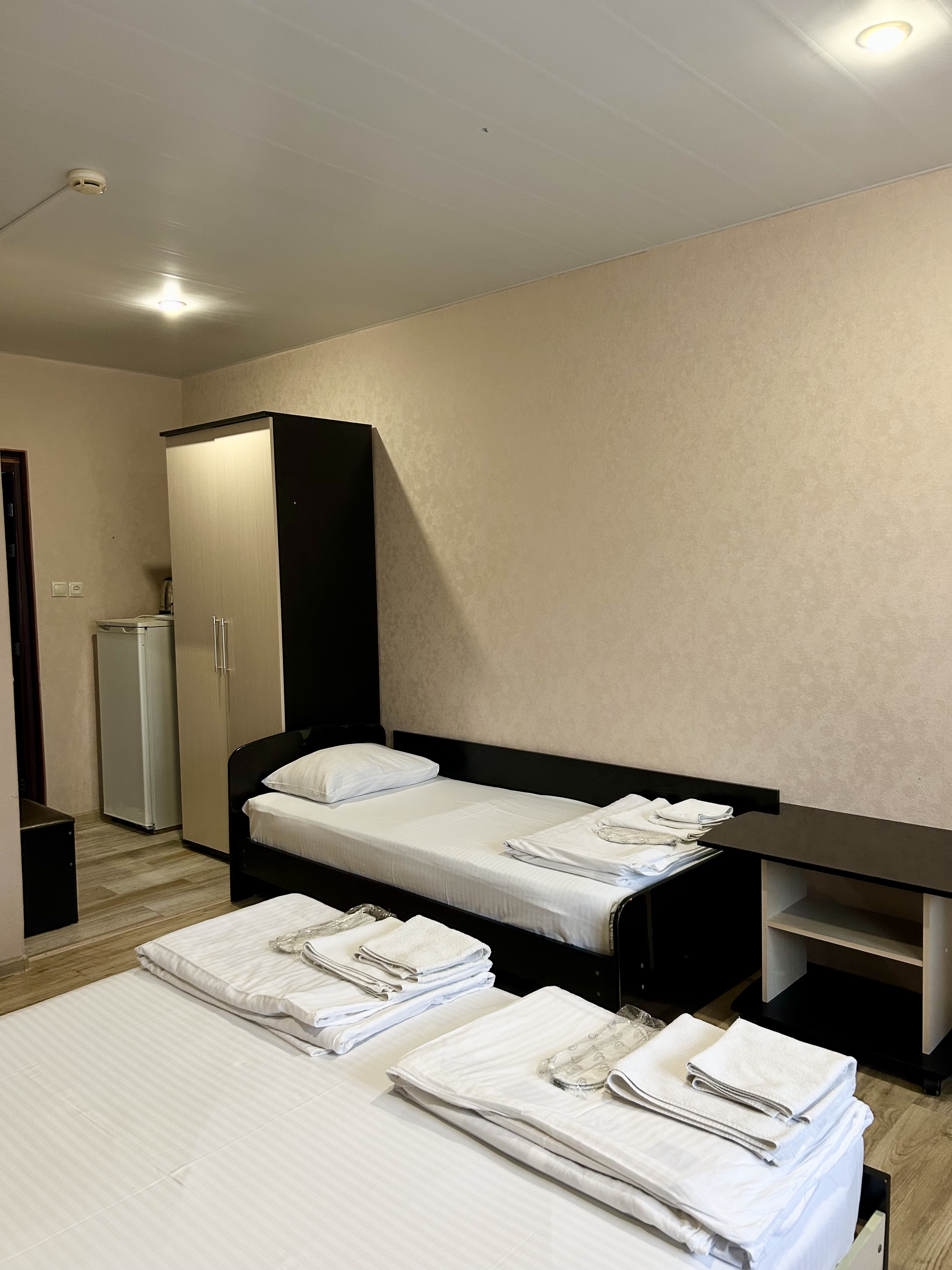 Трехместный номер с балконом располагается на втором этаже гостевого корпуса.