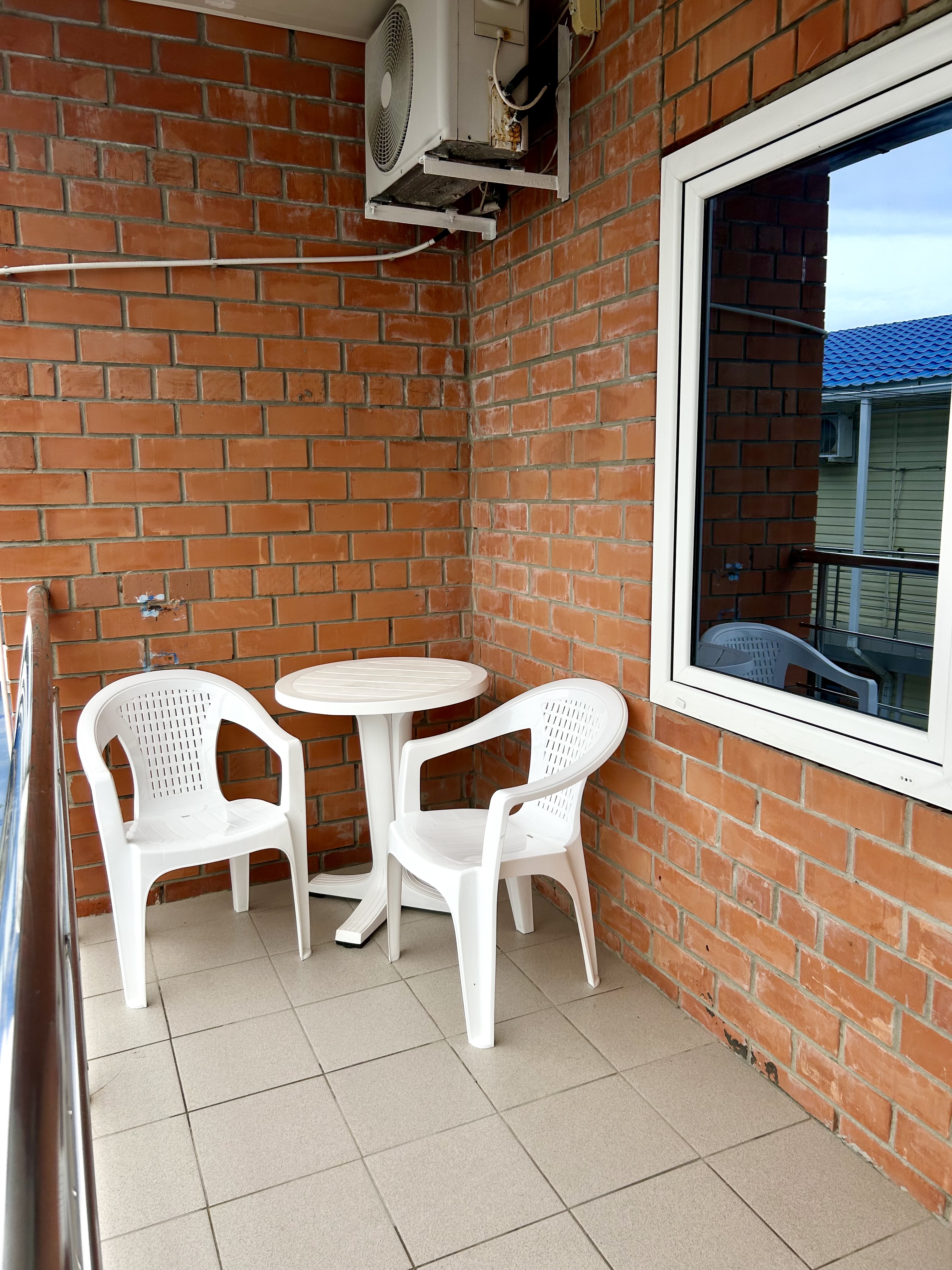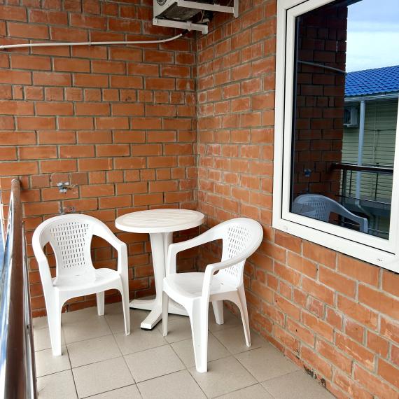 На балконе - столик со стульями, где вы сможете проводить вечера всей семьей!