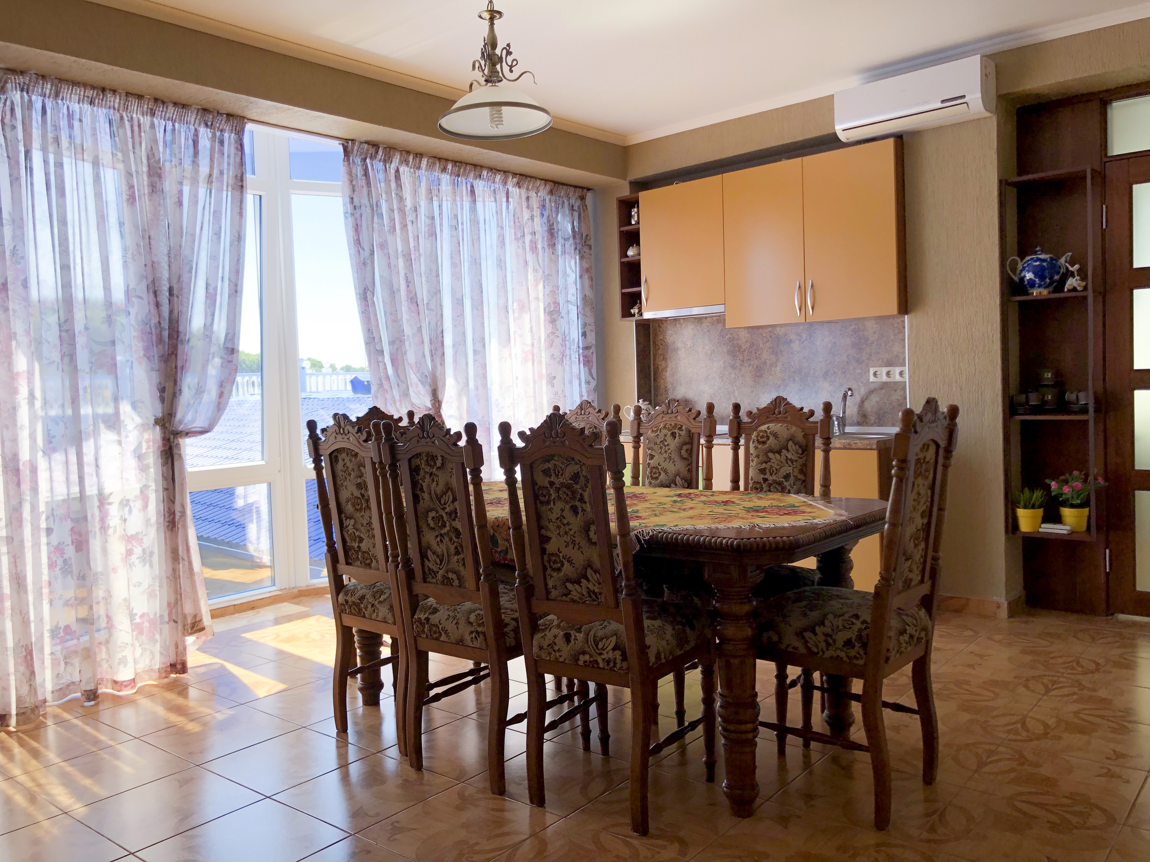 Двухместный номер с общей кухней из окон которого открывается боковой вид на море.